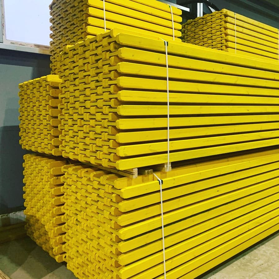 Балка опалубки, которой перекрываются этажи при строительстве различных объектов, создается нашей компанией на современнейшем оборудовании. На специальных станках происходит нарезка древесины на пластины определенных габаритов, которые затем в стопках перемещаются на следующий этап производства.